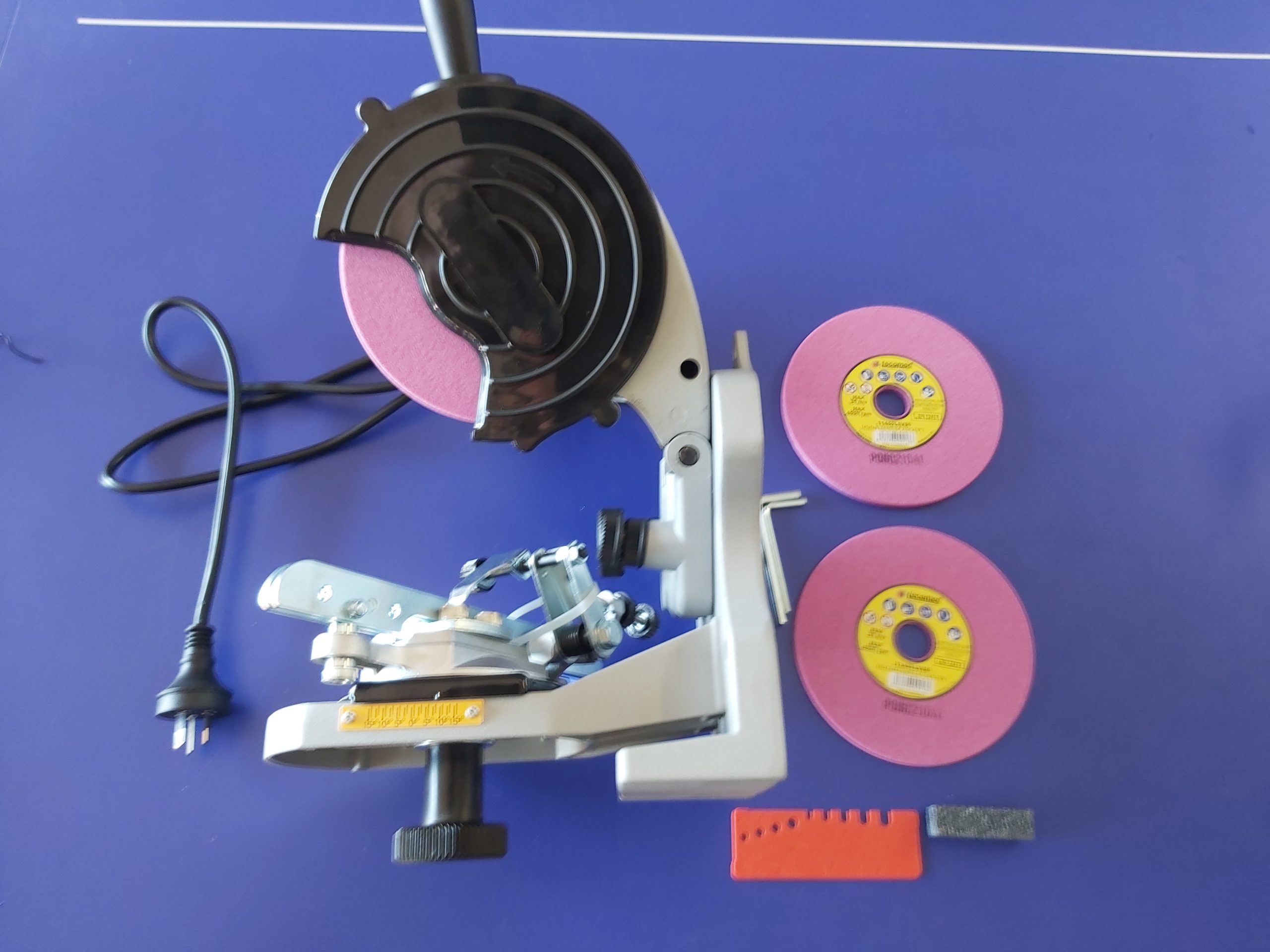 This Tecomec Jolly Evo Chain Grinder will sharpen semi chisel and full chisel chains in every pitch and gauge of chain.